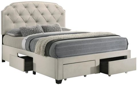 Clean lines and quiet storage come together in this upholstered platform bed, where form meets thoughtful function. The vertical channeled headboard adds a tailored touch, while built-in drawers offer seamless storage at the foot and sides.Read More